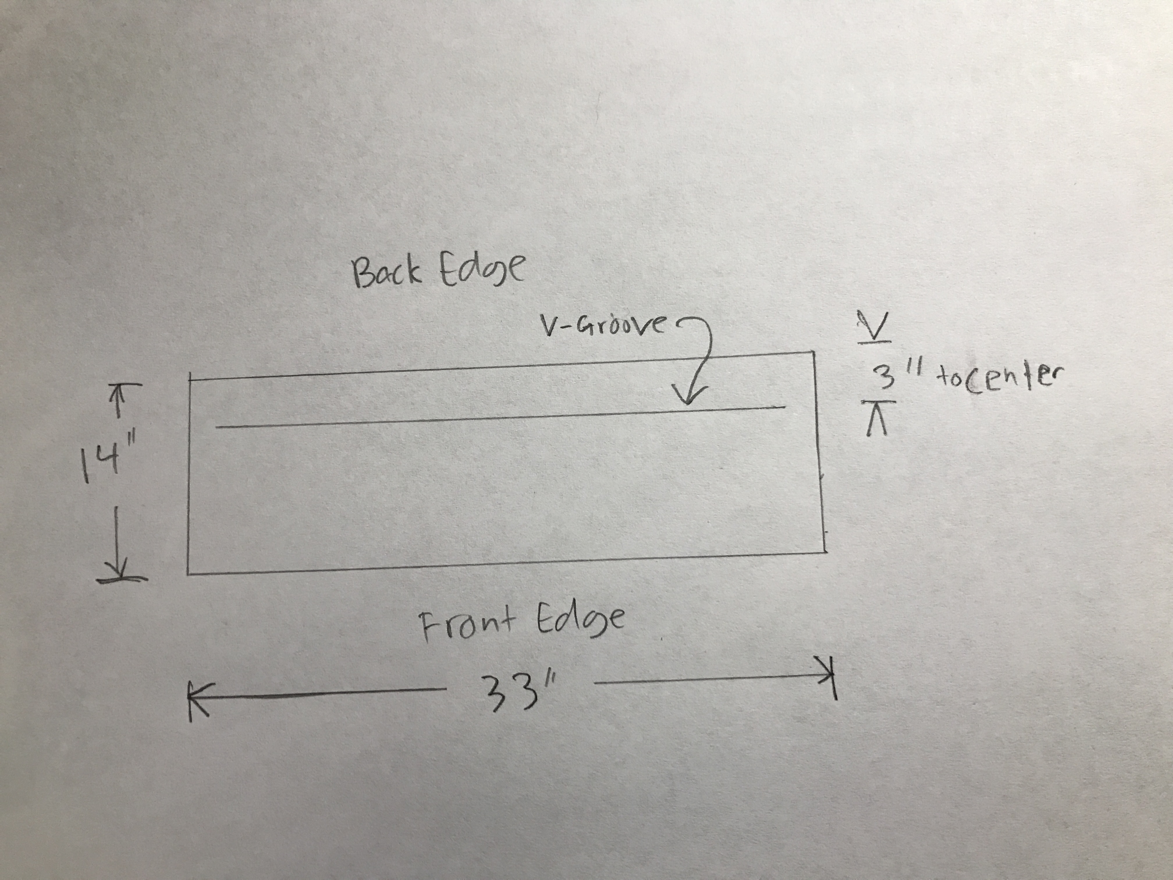 In order to display books, artwork, or china it’s best to have either a groove or a small lip to help keep things upright we’ll cut a 1/2″ wide by 1/4″ deep V-groove 3″ from the back edge for $25 per shelf.